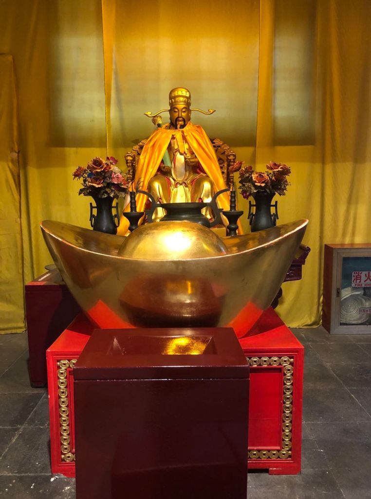 Wang Hai is said to be the seventh monarch of Shang state during Xia Dynasty, that is, before the establishment of Shang Dynasty. He once helped his father to deal with the flood, invented the ox cart, and encouraged people to use the ox cart to pull goods out to trade. Because most of the people engaged in this kind of trade were from the Shang 商 state at that time, people called those who engaged in trade 商人, “merchants”. It can be said that Wang Hai opened up the precedent of Chinese business, so he was called “the ancestor of Chinese merchants” and “Good for Grace God of Wealth”. The ancestor Wang Hai was appointed as the God in charge of the financial resources of the middle road.