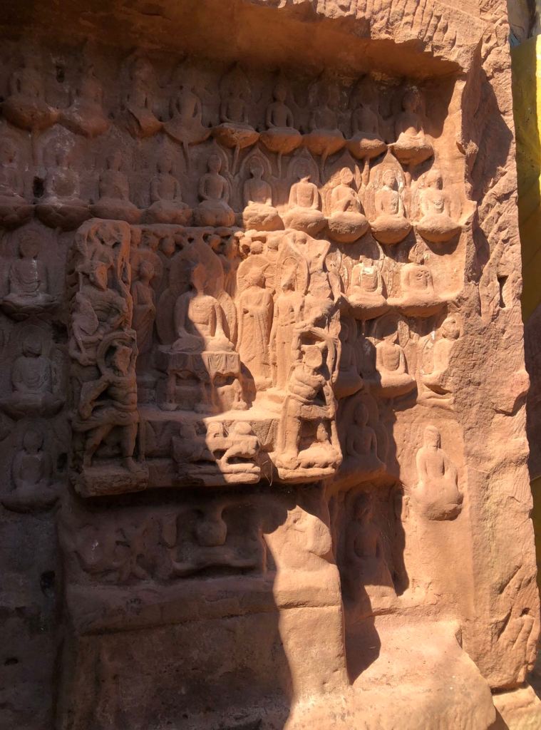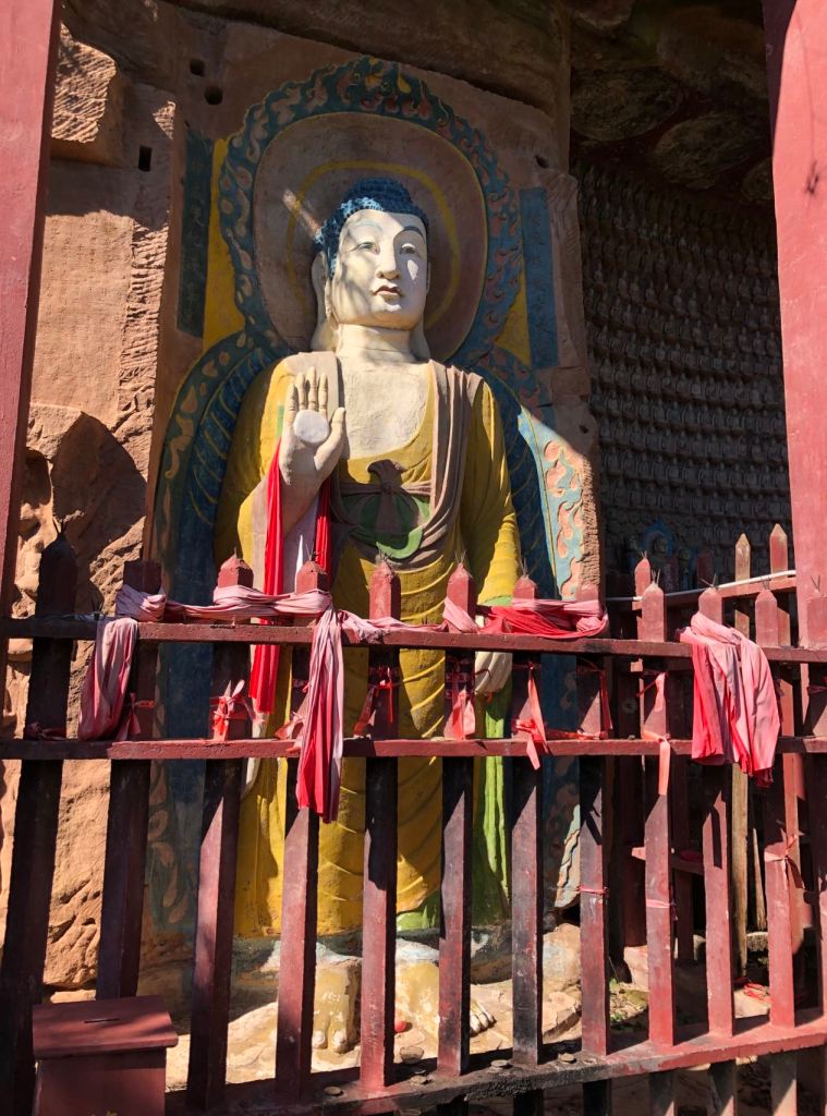 Historically, the spread of stone carvings and grottoes is often related to transportation. For example, Dunhuang Grottoes are to the Northern Silk Road, Guangyuan thousand Buddha cliff has been built on Jinniu (Golden Bull) Road, Bazhong Nankan Cliff Statues are on Rice Warehouse Road, and Qionglai is the hub of the Southern Silk Road. The southern silk road starts from Chengdu and enters Yunnan through Qionglai, Ya’an, Yingjing, Xichang, Dechang and Huili, which is known as the first city on the Southern Silk Road. Qionglai has been rich in salt, iron, wine, tea and porcelain since ancient times, which has attracted merchants from all parts of the Tang Empire. The people were rich and had the financial resources to carry out statue carving. That’s how Qionglai has become the most important grotto centre in Chengdu Plain.