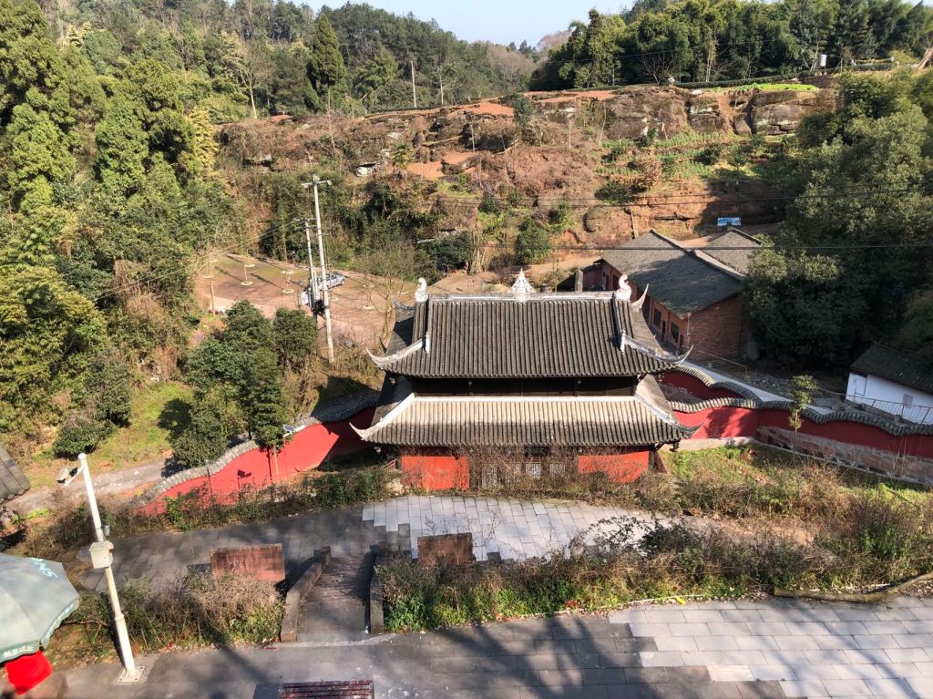 During the Wenchuan earthquake in 2008, the cultural relics of the Pantuo temple were seriously damaged. In 2010, the relevant departments carried out rescue restoration and maintenance on the cliff statues, the main hall, clay sculptures and murals of the Pantuo temple, and strengthened the protection of rainproof and drainage. At the same time, they built a new gate, middle gate, pavilion and management room, and strengthened the environmental renovation of the whole temple. This Guanyin Hall should have been newly built later.