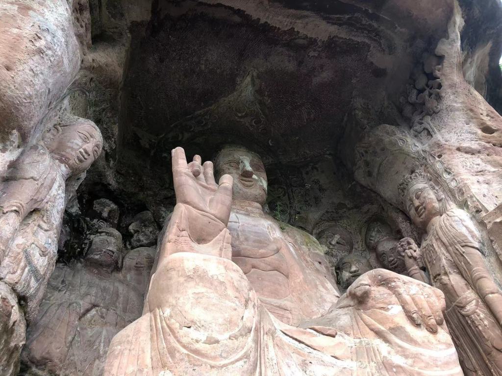 There are a large number of buildings, bridges, ponds and boats in the Stalagmite Mountain Grottoes. Although they directly represent the illusory Buddhist country, they are like a folk paintings, allowing future generations to have a glimpse of the life of the Tang people. With its large scale, exquisite and complete statues, the statues in Shisu Mountain can be regarded as a masterpiece of Sichuan grottoes.