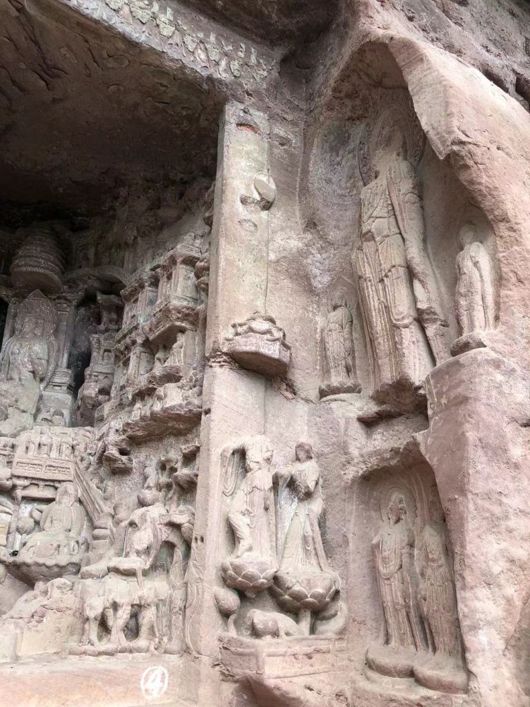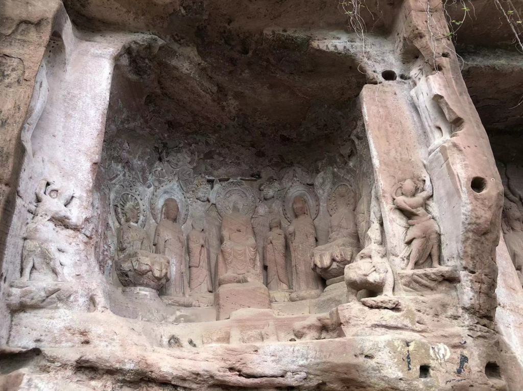 Buddhism was introduced into China along the ancient Silk Road from India, leaving many exquisite grotto statues along the way, from Kizil Grottoes in Xinjiang to Mogao Grottoes in Dunhuang, Yulin grottoes, Yungang Grottoes in Datong and Longmen Grottoes in Luoyang. After the An Lushan 安史 rebellion (755-763 AD), the course of Tang Dynasty changed from prosperity to decline, the economic centre moved South, and there were no large-scale grotto statues in the Central Plains. At this time, Buddhist grotto art entered Sichuan from Jinniu Road, and lotus blossomed in Minjiang River, Jialing River, Fujiang River, Tuojiang River, Qingyi River and other river basins, leaving a lot of grotto sites, such as Guangyuan, Jiajiang, Leshan. The stone carvings of Anyue and Dazu in the Song Dynasty reached the peak of Chinese Grotto Art.